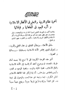 - الكتاب : أهمية نظام التربية والتعليم في الأقطار الإسلامية وأثره البعيد في اتجاهاتها وقياداتها
